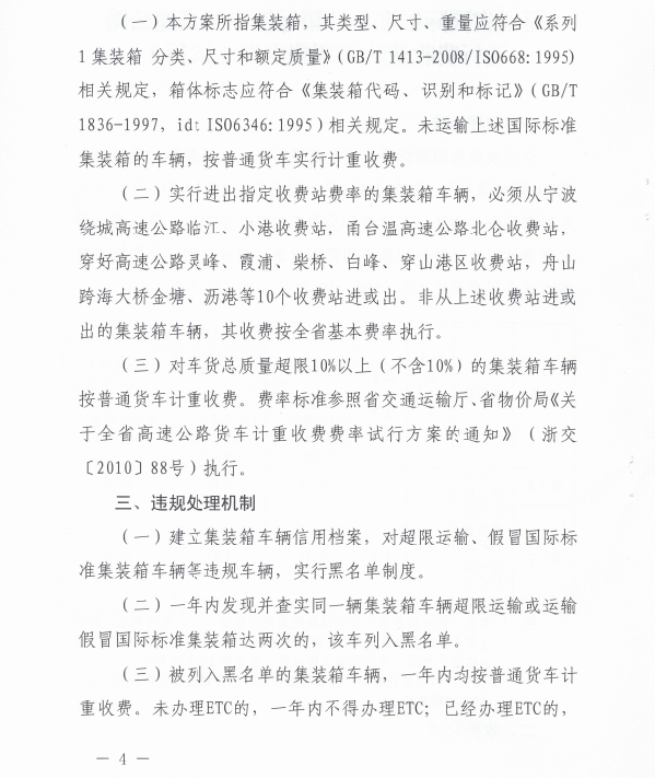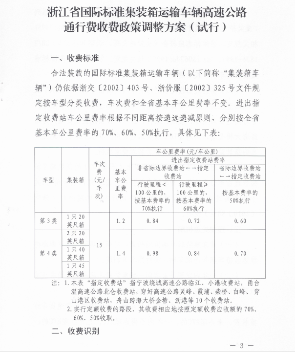 浙江省國際標準集裝箱運輸車輛高速公路通行費收費政策調(diào)整方案(試行)