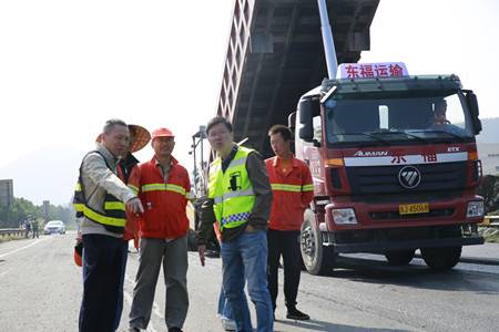 在公司路段寧向K1643+800處左右,路面銑刨作業(yè)正在緊張地進行著,張建平看到施工人員在銑刨車上駕駛著,監(jiān)理單位工作人員在現(xiàn)場低頭觀察著,工程養(yǎng)護部監(jiān)管人員王劍也認真地盯著銑刨車經(jīng)過的路面……“辛苦了!”張建平上前與大家打了聲招呼。然后向大家了解當天的工程安排和進度,以及正在進行的施工作業(yè)情況,詢問了有哪些困難和問題,提出了一些施工中的注意事項,特別強調(diào),要注意安全,要視質(zhì)量為生命,務(wù)必保質(zhì)保量地完成養(yǎng)護攻堅工作。