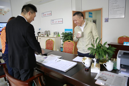 圖為集團副董事長、總經(jīng)理張建平在股權(quán)黃巖收購點檢查