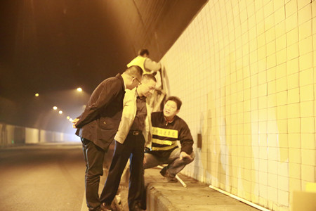 圖為集團副董事長、總經(jīng)理張建平在黃土嶺隧道整治施工現(xiàn)場檢查
