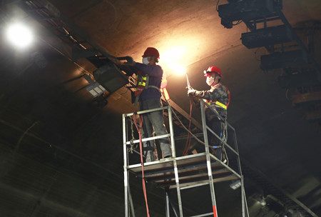 當(dāng)天工程主要是進(jìn)行燈具、風(fēng)機(jī)、布管線、火報、廣播、攝像頭控制箱的安裝,接線調(diào)試,瓷磚修補(bǔ),洞壁注漿、地面病害處置、垃圾清理等。據(jù)悉,截止當(dāng)天晚上10:30,隧道內(nèi)燈具、風(fēng)機(jī)已全部安裝完畢,黃土嶺隧道群整治已完成總工程量的60%。