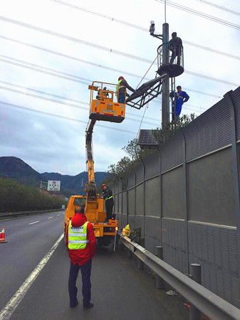 近日,集團工程養(yǎng)護部機電設(shè)備維養(yǎng)中心組織施工單位,頂著寒風(fēng)冷雨對沿線有裂痕破損的云臺太陽能板進行了拆除更換,為即將到來的春運工作打下堅實的基礎(chǔ)。 集團路段共有36個監(jiān)控云臺,它們在提高高速公路管理和服務(wù)水平上起著重要作用,當(dāng)發(fā)生交通異常時,能及時確定事故并實時發(fā)布相應(yīng)的誘導(dǎo)和救援信息,保障道路暢通,減少財產(chǎn)損失。維養(yǎng)中心在之前一次摸底排查中發(fā)現(xiàn)沿線有10處云臺太陽能板由于年久老化,面板晶體出現(xiàn)不同程度開裂破損,嚴(yán)重影響太陽能供電效果,導(dǎo)致監(jiān)控設(shè)備無法有效運轉(zhuǎn)。