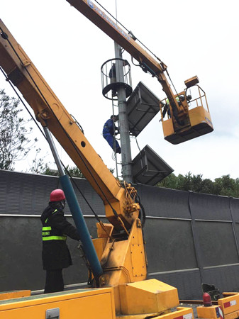 上圖為更換太陽能板現(xiàn)場 為盡快解決這一問題,中心聯(lián)系三家太陽能板供應(yīng)商,通過對性能、價格、服務(wù)等多方面比較后,最終選定杭州一家單位負(fù)責(zé)此次太陽能板供貨、拆除及安裝工作。1月24日,設(shè)備到貨,但同時也碰上了今年入冬以來最強冷空氣??扇舨患皶r更換,勢必會影響春運安全行車。 面對困難,中心隊員并未退縮,每天起早摸黑,帶領(lǐng)安裝人員親赴施工現(xiàn)場,負(fù)責(zé)監(jiān)管和預(yù)警工作。每當(dāng)路面飛駛而過的車輛帶起陣陣寒風(fēng),吹的隊員瑟瑟發(fā)抖時,施工人員都會勸說隊員回車上休息,但都被謝絕了,不僅依舊緊盯施工進度和質(zhì)量,還協(xié)助他們一起拆卸和搬運。在大家共同努力下,所有破損太陽能板在不到3天的時間里被拆卸和更換,比預(yù)定時間提前了整整一天。 更換后的新太陽能板最大輸出功率較之前提高了15%,這將大大提升太陽能板對蓄電池充電效率,保證監(jiān)控云臺有效運轉(zhuǎn),為高速的安全暢通保駕護航。 項寅曉