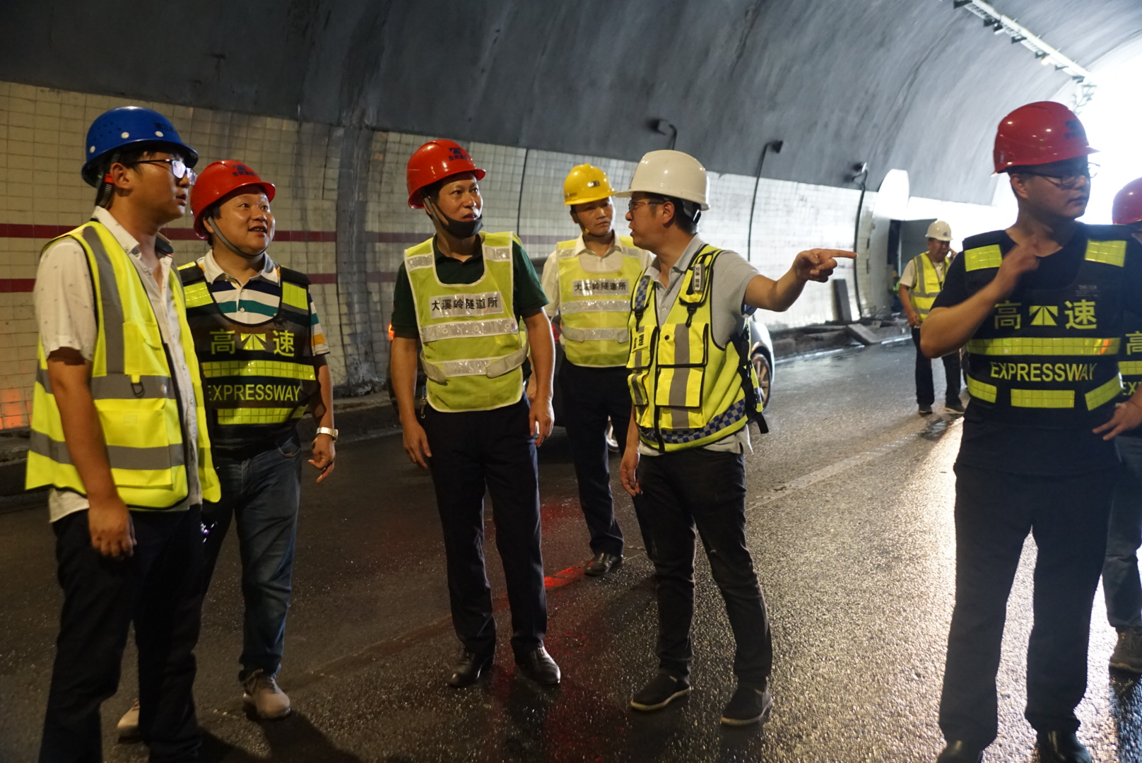 圖為驗(yàn)收小組正在對(duì)隧道進(jìn)行初步驗(yàn)收