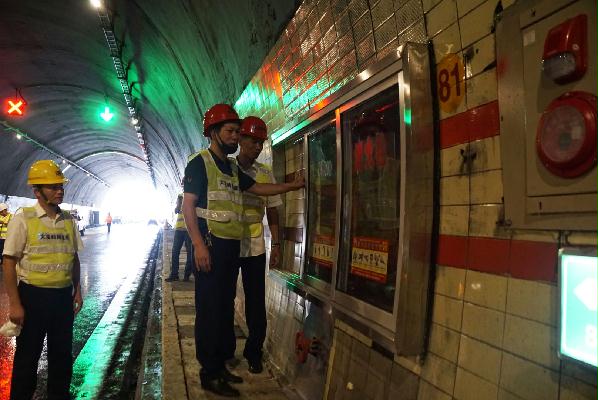 驗(yàn)收小組人員佩戴安全帽,身著反光背心,從寧向隧道北洞口開(kāi)始,以徒步方式開(kāi)展驗(yàn)收。每次途經(jīng)改建之地,他們便仔細(xì)檢測(cè),著重對(duì)機(jī)電設(shè)備安裝調(diào)試效果、消防設(shè)施配備、緊急電話安裝、蓋板更換、瓷磚修復(fù)及清洗情況等進(jìn)行仔細(xì)排查驗(yàn)收。