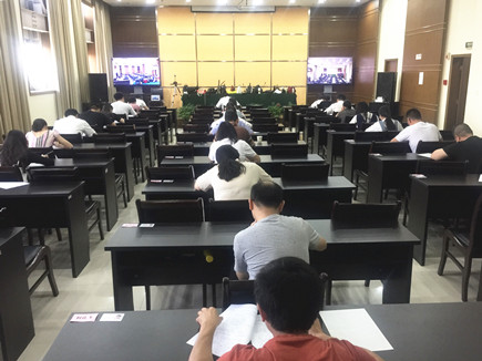 圖為考試現(xiàn)場(chǎng) 為杜絕考場(chǎng)舞弊行為,保證考試過程的嚴(yán)肅公平,現(xiàn)場(chǎng)筆試首次啟用監(jiān)控設(shè)備,考場(chǎng)均“現(xiàn)場(chǎng)直播”實(shí)時(shí)錄像??荚囘^程組織嚴(yán)密,工作有序,考場(chǎng)紀(jì)律嚴(yán)明,公司副總經(jīng)理董阿林到現(xiàn)場(chǎng)檢查考卷密封情況,親自監(jiān)督考風(fēng)考紀(jì)。 公司人力資源部、監(jiān)察室與征費(fèi)管理部負(fù)責(zé)人全程參與監(jiān)考。 陳一沁