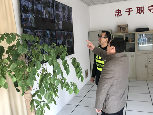 圖為考察小組在崗?fù)?nèi)現(xiàn)場觀看文明服務(wù)