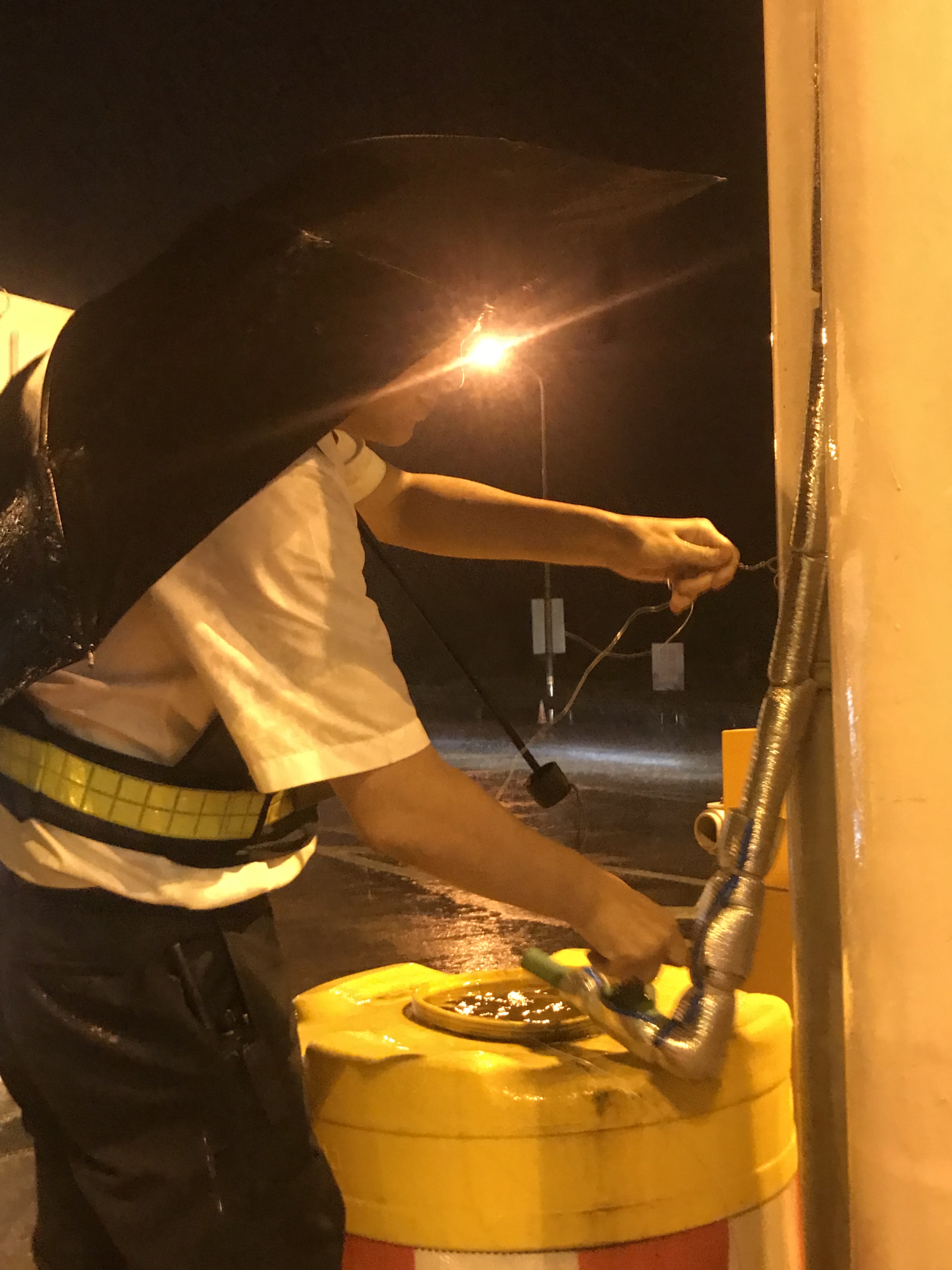 凌晨2點10分,水位猛漲至70厘米,考慮到人員安全,孫明偉立即組織人員叫醒在寢室休息的員工,短短5分鐘內,將大家全部安全撤離到辦公樓。行政人員紛紛將寢室讓給第二天早上上崗的同事,自己卻整宿未睡,時刻關注水位上漲情況,直到天亮潮水退下,大家才在自己辦公室凳子上、會議室椅子上稍作休息。
