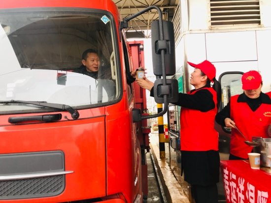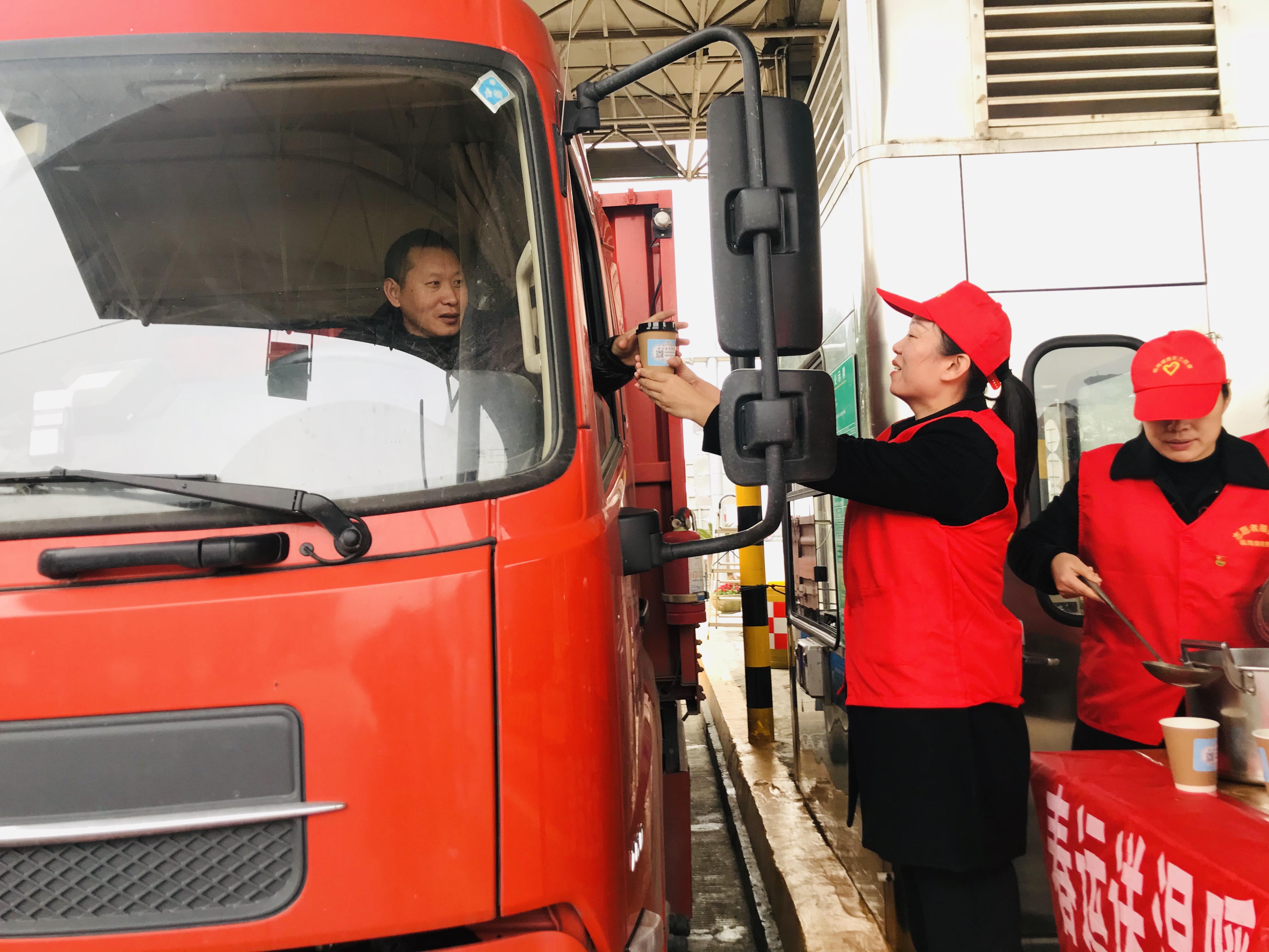 圖為送溫暖活動現(xiàn)場 活動當天,雖然氣溫較低,但在臨海南收費所出口處,身著紅色馬甲的志愿者們頂著嚴寒,依然熱情地為過往司乘人員遞上一杯杯滾燙的姜茶、紅棗茶,并向他們提供問詢、指路、飲水和提示路況信息等便捷服務。除了設置志愿者便民服務臺,臨海南收費所還為過往駕駛員和出行旅客臨時增設休息室,提供道路溫馨提示服務,同時還在車道配備了飲水機、藥品、修車工具等免費便民物品。