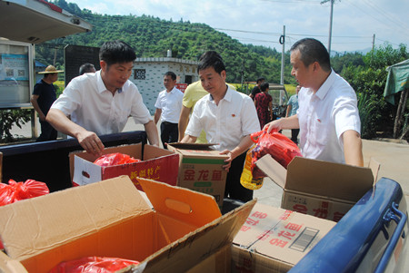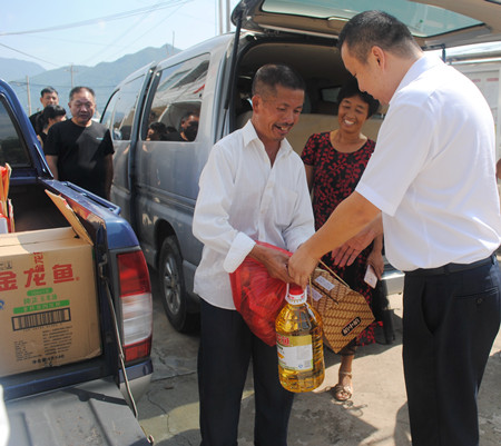 圖為臺州收費(fèi)所黨支部書記王小勇給困難戶送上慰問品 潘山頭村共有22戶困難戶,因時(shí)間關(guān)系,臺州收費(fèi)所黨支部一行走訪了其中3戶困難家庭,對于其他19戶困難家庭委托該村“兩委”領(lǐng)導(dǎo)代為慰問。每到一戶,支部書記王小勇都詳細(xì)詢問了解困難群眾的生活情況,勉勵(lì)他們積極面對生活,戰(zhàn)勝困難,同時(shí)為他們送去了中秋月餅、食用油、干果等慰問品及節(jié)日問候。
