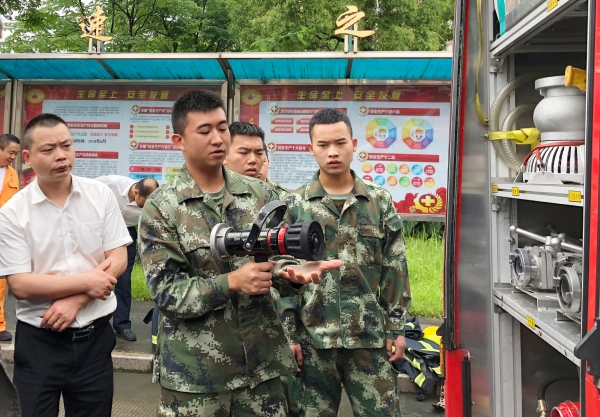 圖為培訓(xùn)現(xiàn)場 活動現(xiàn)場,黃巖消防大隊官兵向參加活動的員工展示消防車上的消防裝備實(shí)物,講解裝備使用功能以及消防車基本構(gòu)造,耐心地解答員工提出的問題,并當(dāng)場進(jìn)行專業(yè)的消防水帶連接滅火演示。之后,臺州收費(fèi)所員工開展消防水帶連接滅火演練,獲得黃巖消防大隊官兵的肯定,同時針對演練中存在的問題及不足給出專業(yè)性的指導(dǎo)意見。