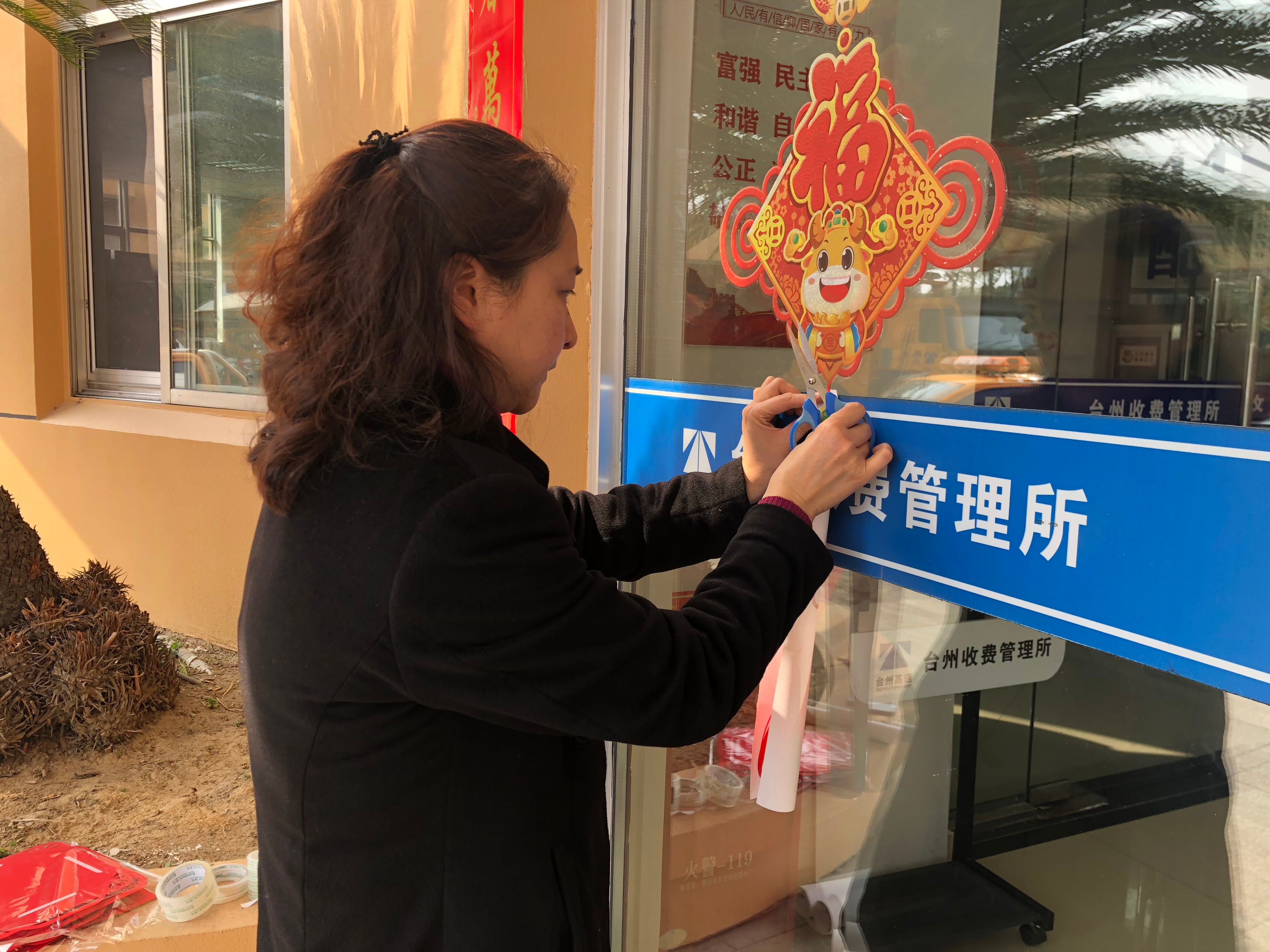 感受年味,喜迎新春 2月7日,臺(tái)州收費(fèi)所員工給站所添點(diǎn)“味兒”。大家分工合作掛燈籠、貼對(duì)聯(lián)、貼窗花、插彩旗……一盞盞大紅燈籠高高掛起,一幅幅新春對(duì)聯(lián)溫暖門房,一張張精致窗花鑲嵌窗上,一面面五彩旗幟舞動(dòng)廣場(chǎng),整個(gè)收費(fèi)所充滿了新年的味道,溫馨祥和。
