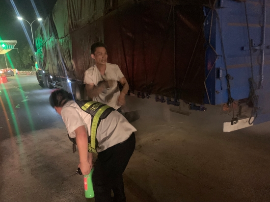 貨車(chē)起火,收費(fèi)員齊力撲滅 |