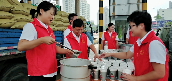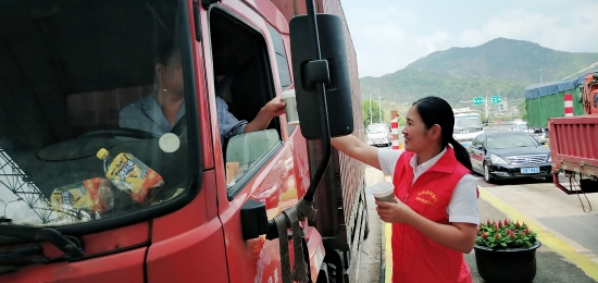 圖為送清涼活動現(xiàn)場 “師傅,你好,喝一碗冰綠豆湯解解暑吧。” 溫嶺西收費(fèi)所、大溪嶺隧道所黨員帶頭,團(tuán)員響應(yīng),大家主動放棄休息時間,組成志愿服務(wù)隊(duì),頂著高溫在高速出口處為過往司乘免費(fèi)提供綠豆湯、紅棗湯等飲品,同時還備足藿香正氣水、風(fēng)油精等解暑藥品,讓廣大司乘在炎炎夏日感受到一絲清涼。當(dāng)司乘人員從志愿者手中接過一杯杯綠豆湯時,志愿者還不忘提醒司乘高溫酷暑天氣注意行車安全。面對“春風(fēng)”般微笑的志愿者,喝著綠豆湯的司乘人員都露出了開心的笑容,紛紛豎起大拇指感謝志愿者們的貼心服務(wù)。