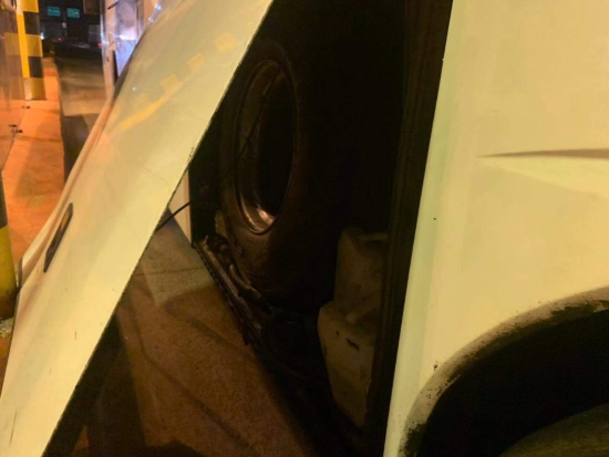圖為被物品擠開的客車側門 此次事故由于客車車箱內放置過多的物品,在車箱門邊上還硬塞了幾只大輪胎,最終導致輪胎將側門擠開而沒被司機發(fā)現(xiàn),在高速過ETC車道時箱門撞到了設備,司機對此也是后悔不已。 近期,收費站發(fā)生過不少同類事件,有司機通過ETC車道時因車速過快未感應到線圈,擋風玻璃撞到欄桿;有集裝箱后門沒關撞到ETC設備。在此提醒過往司乘行車前務必要檢查好車輛安全情況,過ETC車道需要慢行。如果在高速上出現(xiàn)突發(fā)情況也不要慌張,及時向工作人員或者撥打求助電話請求幫助。 楊相暖