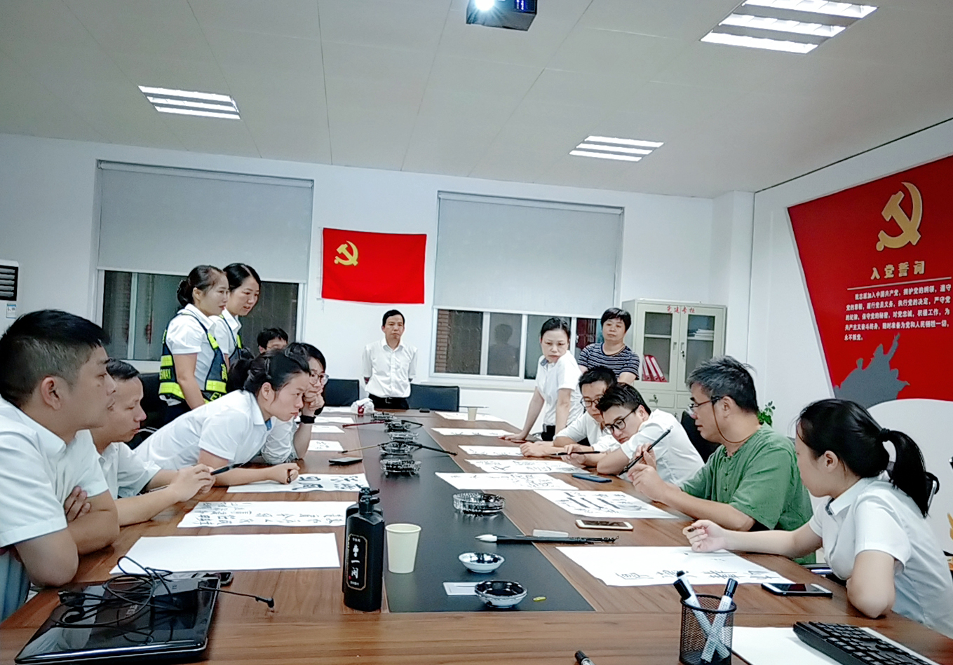 圖為學員練習書法 通過老師這種直觀的授課方式,學員們很快領會了書寫的基本節(jié)奏和韻律,每個人認真臨摹、創(chuàng)作,用眼睛感受書法美、用練習探索書法美、用心靈領悟書法美、用手創(chuàng)造書法美,共同享受了一場別開生面的書法盛宴。 此次學習使大家掌握了更多書法理論知識和書寫本領技能,強化了員工們對書法藝術的欣賞和思考,也進一步增強了員工間的凝聚力和吸引力。 鄭霞霞