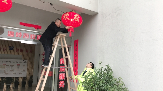 圖為工作人員共同裝扮收費所 此次活動,溫嶺西收費所本著大氣、熱烈、節(jié)儉的原則,在食堂、辦公樓、操場等區(qū)域掛上燈籠、拉上彩旗、貼上福字和對聯(lián),在收費內廣場護欄處插上彩旗,有了這些裝扮,整個站所處處洋溢著喜氣洋洋、新穎美觀的節(jié)日氛圍。此外,員工們還自發(fā)在站所打掃衛(wèi)生清理垃圾,重點對辦公樓、宿舍區(qū)及收費崗亭和內外廣場等區(qū)域的環(huán)境衛(wèi)生進行全方位清掃。各班組齊心協(xié)力共同打掃,為春節(jié)掃塵。經過大家的努力,整個站區(qū)呈現(xiàn)出整潔優(yōu)美的工作環(huán)境,向過往司乘充分展示溫嶺西收費所的良好精神風貌。