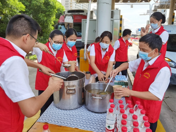 活動(dòng)開(kāi)展前,大家集思廣益,準(zhǔn)備好了綠豆湯、蓮子湯、礦泉水、藿香正氣水、風(fēng)油精、人丹等防暑降溫用品。一杯綠豆湯代表一片心意,一份貼心服務(wù)送一份清涼。當(dāng)一份份清涼和關(guān)懷送至他們手中的時(shí)候,司乘人員們先是感到驚訝,隨后連忙道謝。 “趕了這么久的路,在車上的確又熱又累,一下高速就有清涼的東西送到手上,疲勞一下都煙消云散了,為你們的服務(wù)點(diǎn)贊!”一位外地貨車司機(jī)笑著說(shuō)。 活動(dòng)中,志愿者在遞上消暑用品的同時(shí)還不忘向司乘宣傳夏季安全行車注意事項(xiàng)。收費(fèi)員在文明服務(wù)中也增加“請(qǐng)注意防暑降溫”、“請(qǐng)不要疲勞駕駛”等文明服務(wù)提醒用語(yǔ)。收費(fèi)所做的不僅僅是收費(fèi),更是用心去了解司乘人員的需求,用真誠(chéng)傳遞理念,司機(jī)臉上的笑容就是最好的回報(bào)。