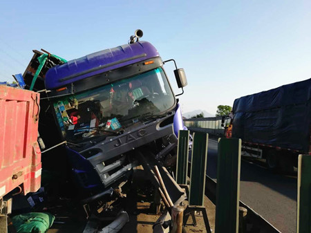 現(xiàn)場,事故車輛占據(jù)整個超車道和半個主車道,因此造成后方嚴(yán)重堵車。施救中心在接到報警后迅速出動,不僅配合警車在現(xiàn)場預(yù)警,而且想辦法盡快將事故車輛拖離車道,以免造成二次事故。隨后,養(yǎng)護部門到達(dá)現(xiàn)場清理。經(jīng)過5個多小時奮戰(zhàn),40多人的合力處理下,道路終于恢復(fù)了暢通。 本次貨車側(cè)翻事故給高速路產(chǎn)造成了巨大損失,除了中央護欄損壞,地上的漏油和玻璃碎片殘渣給路產(chǎn)定損和取證工作帶來了巨大的難度。施救中心人員為了第一時間保證證據(jù),天黑一次,天亮一次,踩著滿地的油污和玻璃瓶渣分兩次取證,努力確??辈於〒p的客觀性和真實性。 王凱