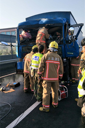 控制好現(xiàn)場(chǎng)以后,消防人員利用擴(kuò)張器展開(kāi)救援,但是成效并不明顯。7點(diǎn)左右,救護(hù)車已然到達(dá)現(xiàn)場(chǎng),但是駕駛員依舊卡在車中。為保障駕駛員生命安全,消防人員并未進(jìn)行強(qiáng)行拆除,而是召喚了一輛帶有氣泵設(shè)備的專業(yè)消防車趕往現(xiàn)場(chǎng),利用氣泵剪進(jìn)行破拆,經(jīng)過(guò)眾人的努力,終于將臉上鮮血直流的駕駛員成功救出,并送上救護(hù)車。7點(diǎn)30分,救護(hù)車與消防人員撤離現(xiàn)場(chǎng),施救中心人員進(jìn)行善后工作,并將事故車輛拖離現(xiàn)場(chǎng)。8時(shí)許,高速恢復(fù)通行。