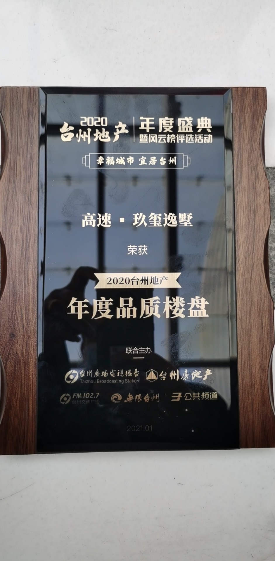 2021年1月19日下午,由臺州廣播電影電視集團(tuán)聯(lián)合臺州市房地產(chǎn)業(yè)協(xié)會共同舉辦的2020臺州地產(chǎn)年度盛典暨臺州地產(chǎn)風(fēng)云榜,在全城熱矚下重磅舉行。高速房產(chǎn)玖璽府·逸墅項目榮獲“2020臺州地產(chǎn)年度品質(zhì)樓盤”榮譽稱號。