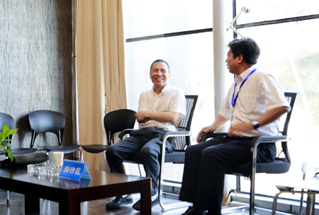 圖為集團(tuán)副董事長、總經(jīng)理張建平向股權(quán)溫嶺收購點(diǎn)工作人員問候