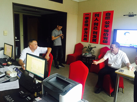 圖為集團(tuán)副董事長(zhǎng)、總經(jīng)理張建平在天臺(tái)收購(gòu)點(diǎn)詳細(xì)詢(xún)問(wèn)收購(gòu)工作具體開(kāi)展情況 張建平向各地方政府前期對(duì)公司股權(quán)收購(gòu)工作的支持表示感謝,他介紹了當(dāng)?shù)嘏_(tái)州高速股權(quán)收購(gòu)進(jìn)展情況,同時(shí)闡明收購(gòu)工作中存在的困難,需要地方政府繼續(xù)對(duì)我們的工作給予支持和幫助。三地政府都表示一定會(huì)全力支持這項(xiàng)工作。仙居縣分管公司股權(quán)收購(gòu)的常務(wù)副縣長(zhǎng)說(shuō),“放心吧,我們一起想辦法,先從持股較多的法人股入手,再化大力氣做小股東工作,一定會(huì)圓滿(mǎn)完成任務(wù)?!?/span> 張建平一行先后來(lái)到三地股權(quán)收購(gòu)點(diǎn),向收購(gòu)一線的工作人員表示親切的問(wèn)候。張建平對(duì)大家的工作給予肯定,感謝所有人勤勤懇懇,無(wú)私付出,并希望大家繼續(xù)努力,共同實(shí)現(xiàn)目標(biāo)。工作人員詳細(xì)介紹了日常具體工作方法,他們緊跟公司股權(quán)收購(gòu)總體布局,并結(jié)合當(dāng)?shù)靥厥馇闆r,因地制宜,有序靈活地開(kāi)展股權(quán)收購(gòu)工作。