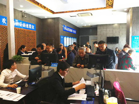 10月31日當天,全市各收購點股東絡(luò)繹不絕,股東轉(zhuǎn)讓熱情高漲,場面尤其火爆。當天下午,收購時間點過后,還有股東在收購點辦理轉(zhuǎn)讓手續(xù)。 李佩紅