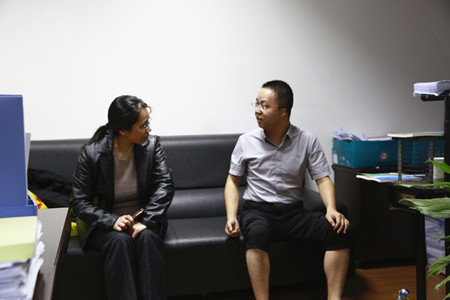 圖為當晚,辦公室負責人與股東溝通股權(quán)轉(zhuǎn)讓事宜