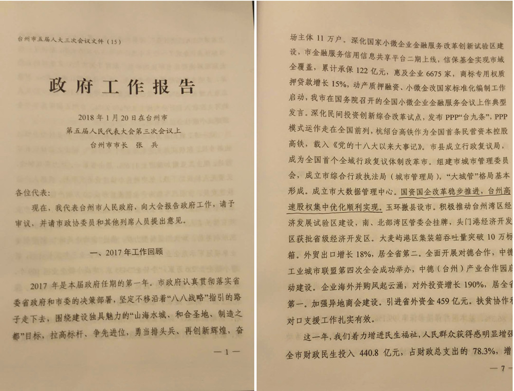 臺州高速股權(quán)集中優(yōu)化寫進《政府工作報告》 臺州市五屆人大三次會議于1月20日上午如期召開,“國資國企改革穩(wěn)步推進,臺州高速股權(quán)集中優(yōu)化順利實現(xiàn)”,寫進了《政府工作報告》。