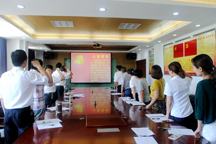 圖為全體黨員重溫入黨誓詞 會議第一項內(nèi)容由該所黨支部書記王小勇帶領(lǐng)全體黨員重溫入黨誓詞,王小勇要求各位黨員牢記宗旨,做一名合格黨員。接下來全體黨員觀看《廖俊波:永遠的“樵夫”——一名共產(chǎn)黨員的樂與愛》視頻,學(xué)習(xí)市委書記王昌榮在全市領(lǐng)導(dǎo)干部會議上的講話精神等。大家結(jié)合高速精神大討論,對照先進典型和“四講四有”合格黨員標準,聯(lián)系個人思想和工作實際,認真開展批評與自我批評,查找不足,剖析原因,明確方向,并提出改進措施。 會后,王小勇強調(diào),各位黨員要做到對黨忠誠,個人服從組織,樹立理想信念,強化黨員意識,做好本職工作。 鄭瑛芝