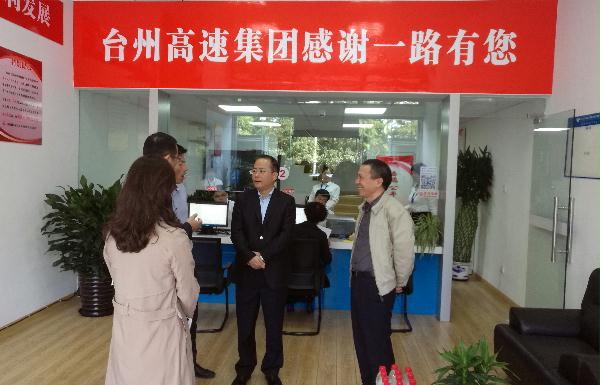 圖為市委常委、常務(wù)副市長董貴波到臺(tái)州高速股權(quán)椒江收購點(diǎn)調(diào)研