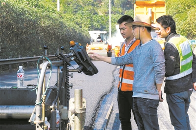 “路面銑刨時(shí)有時(shí)會(huì)出現(xiàn)銑刨不完全存在夾層的現(xiàn)象,如不清理干凈則會(huì)嚴(yán)重影響攤鋪后路面的平整度。”楊金梁介紹道,所以攤鋪時(shí)每道工序,他都時(shí)刻緊盯,確保攤鋪的路面不存在任何瑕疵。