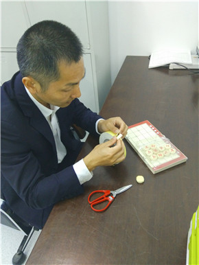 崗?fù)だ锏尿?yàn)鈔機(jī)是壓著讀卡器插線頭,導(dǎo)致讀卡器無法使用。這個(gè)問題雖小,但反復(fù)修理多次,還是沒能修好。葉再敏知道,果斷買了一副象棋,將棋盤粘上雙面膠,墊在驗(yàn)鈔機(jī)的底下,從此以后這個(gè)小問題再也沒有出現(xiàn)過。