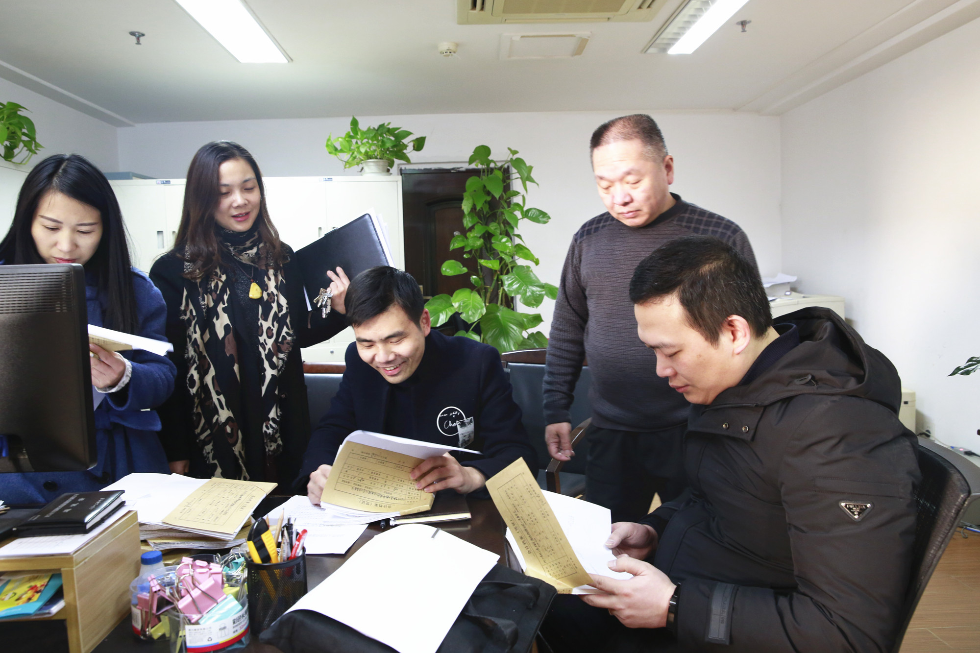 圖為檢查人員檢查資料現(xiàn)場