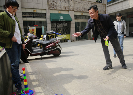 圖為公司工會(huì)主席項(xiàng)義超在參加套圈活動(dòng)