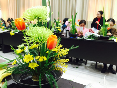公司“三八”婦女節(jié)開展插花活動 3月8日下午,公司47名女員工歡聚一堂,開展了一次具有古樸風韻的插花活動?;顒友埩酥袊寤ɑㄋ噮f(xié)會理事、臺州市花藝文化研究會會長蘇群老師作指導。