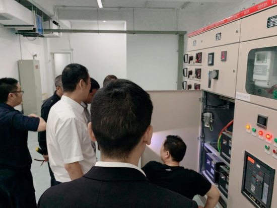 圖為多方合力查找問題現(xiàn)場 5月23日,電力公司上門檢修,告知配電房及電路問題一切正常。面對空調(diào)正常、電路正常的報告,展廳內(nèi)又嘗試開啟空調(diào),但10分鐘左右高壓又跳閘。即將進入炎熱的夏季,房產(chǎn)銷售展廳內(nèi)不能缺少空調(diào)。 房產(chǎn)公司求援于工程部機電設備維養(yǎng)中心,5月28日,葉俊等四名專業(yè)電力人員,以及大溪嶺隧道所金衛(wèi)軍赴銷售廳對電力問題進行現(xiàn)場勘察,經(jīng)仔細梳理、剖析,得出結(jié)論后反饋給電力部門,電力部門采納建議后第二次派人前來整改,歷史遺留電力問題終于徹底排除。 鄭攀