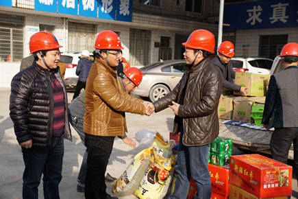 上圖為慰問現(xiàn)場 每到一個標(biāo)段,慰問組都詳細(xì)了解項目當(dāng)前施工情況以及春節(jié)期間的工作安排,為他們送上了慰問品,對于那些臨近春節(jié)仍奮戰(zhàn)在工地一線的工人們,慰問組代表市政公司表達(dá)了衷心的感謝,并提早向全體工作人員致以新春佳節(jié)的祝福。 鐘彪指出,內(nèi)環(huán)路(黃巖段)在2017年度建設(shè)時間緊,任務(wù)重,各項目部在搶抓工程進(jìn)度的同時要注重安全生產(chǎn),關(guān)心工人生活,保障工人人身和財產(chǎn)安全,特別是過年期間,各項目部負(fù)責(zé)人和值班人員要保持24小時通訊暢通,保證各項工作正常運轉(zhuǎn),確保平安過節(jié)。 張琛