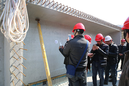 在該項(xiàng)目三分部鋼筋加工廠和T梁預(yù)制廠的現(xiàn)場(chǎng),騰達(dá)建設(shè)集團(tuán)公司副總經(jīng)理蔣冬湖向來(lái)訪者詳細(xì)講解了鋼筋標(biāo)準(zhǔn)化制作工藝、智能彎箍住焊接機(jī)、箱式梯籠、智能噴淋養(yǎng)護(hù)等施工特色及亮點(diǎn),并現(xiàn)場(chǎng)向觀摩人員展示了施工全過(guò)程二維碼控制,只要用掃一掃構(gòu)件上的二維碼,該構(gòu)件所有相關(guān)的施工信息馬上就能一目了然的在手機(jī)上呈現(xiàn),實(shí)現(xiàn)了施工過(guò)程中的信息化管理及全過(guò)程監(jiān)控。觀摩人員一邊認(rèn)真聽(tīng)介紹,一邊不時(shí)拿起手機(jī)拍攝記錄下一些自己感興趣的突破資料,并與同行不斷交流著各自的經(jīng)驗(yàn)與心得。