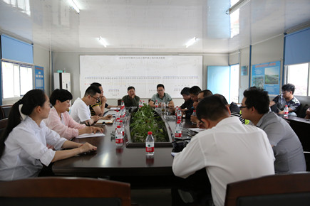 圖為考評(píng)組在8#立交項(xiàng)目部匯總反饋檢查問(wèn)題