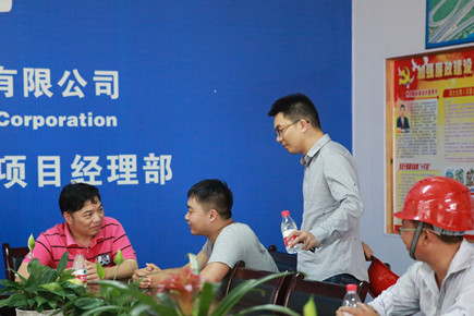 圖為公司總工程師江輝在現(xiàn)場(chǎng)對(duì)抓好工程建設(shè)提出相關(guān)要求