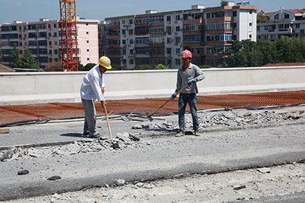 鐘志偉是8#立交項(xiàng)目部的現(xiàn)場(chǎng)管理人員?!澳壳罢谑┕さ氖?#立交主線橋的橋面鋪裝層,這個(gè)班組是月初進(jìn)場(chǎng),按照預(yù)計(jì)工期,月底前必須完成所有橋面鋪裝。”鐘志偉說(shuō),時(shí)間緊、任務(wù)重,三伏天也要連軸轉(zhuǎn)。