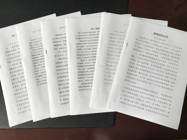 圖為勤政廉政讀書心得 早在年初,市政公司每一位員工簽訂了《廉潔履職個人承諾書》,這個月新到的兩名員工剛進(jìn)公司第一天即簽訂了這份承諾書。